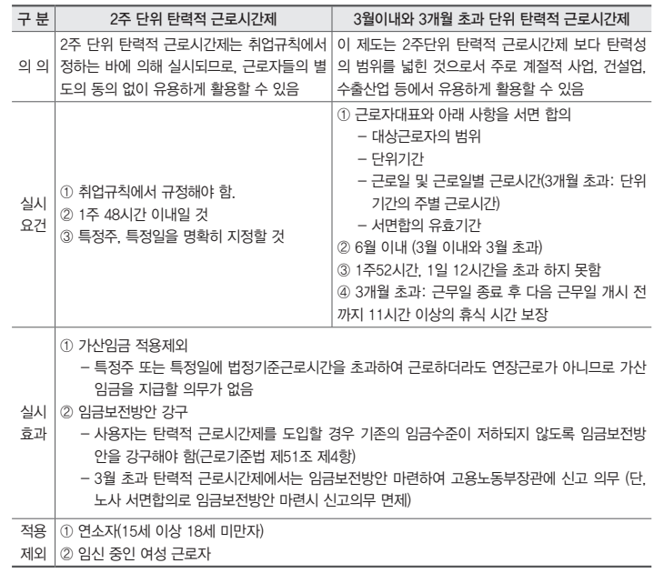 (2) 3개월 이내와 3개월 초과하는 탄력적 근로시간제 도입