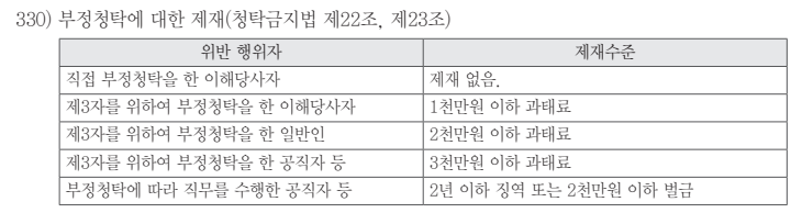 아래에서는 김영란법의 주요 내용인 불법청탁과 금품수수의 원칙과 예외에