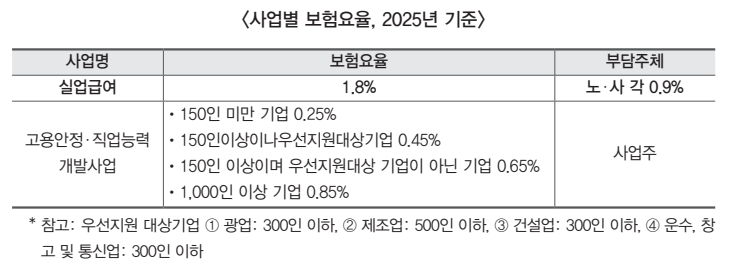 <사업별 보험요율, 2025년 기준>