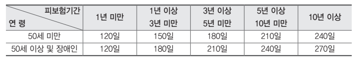 구직급여는 퇴직 당시 연령과 고용보험 가입기간에 따라 120~270일의 범위 내에서 퇴직 전 평균임금의 60% 지급된다.