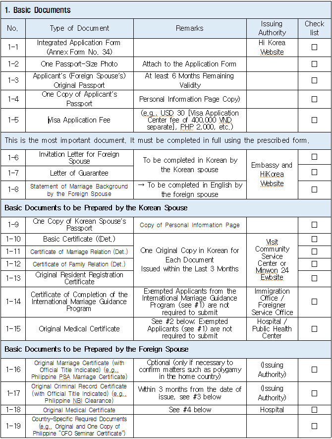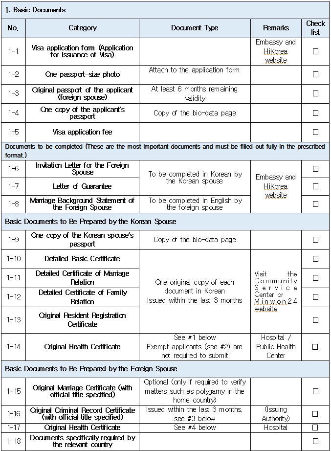| Foreigner Registration | 1. Spouse of a Korean National (F-6-1)