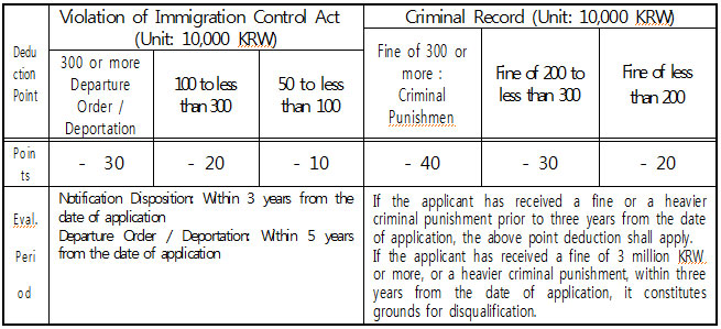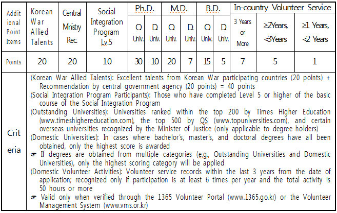 | Scope of Activities | Persons intending to stay in Korea long-term in order to obtain permanent residency. |