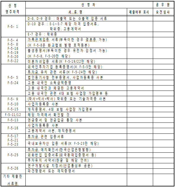 체류자격 변경허가 | #외국적동포를 제외한 영주(F-5) 체류자격 부여