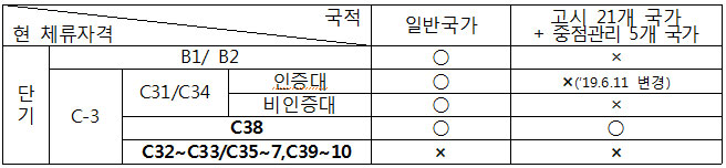 ※ 영리목적이 아닌 문화예술(D-1), 유학(D-2), 일반연수(D-4) 자격소지자의 소속기관 또는 단체의 변경(명칭변경 포함)과 취재(D-5), 종교(D-6), 주재(D-7), 기업투자(D-8), 무역경영(D-9)자격소지자의 소속기관 또는 단체의 명칭이 변경되는 경우에는 법 제35조의 외국인등록사항 변경신고(시행규칙 제49조의 2) |